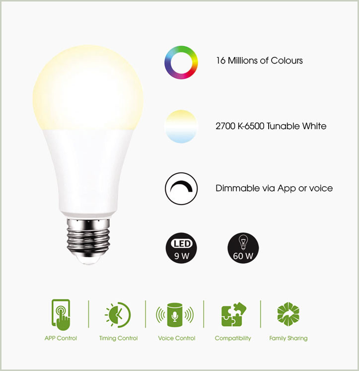 BÓNG ĐÈN THÔNG MINH WIFI RGB ISACHI SC-W11LB