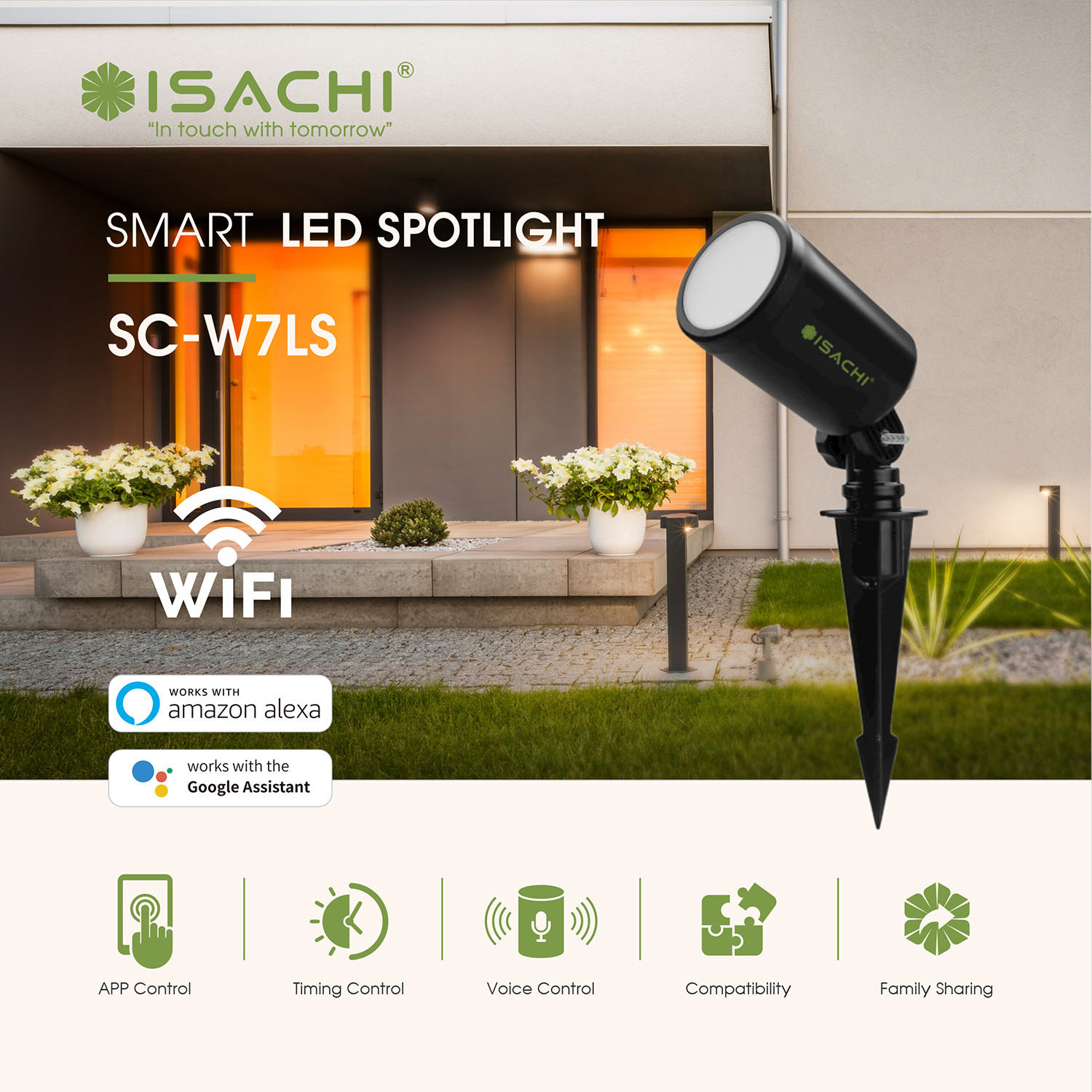ĐÈN LED SÂN VƯỜN WIFI THÔNG MINH ISACHI SC-W7LS